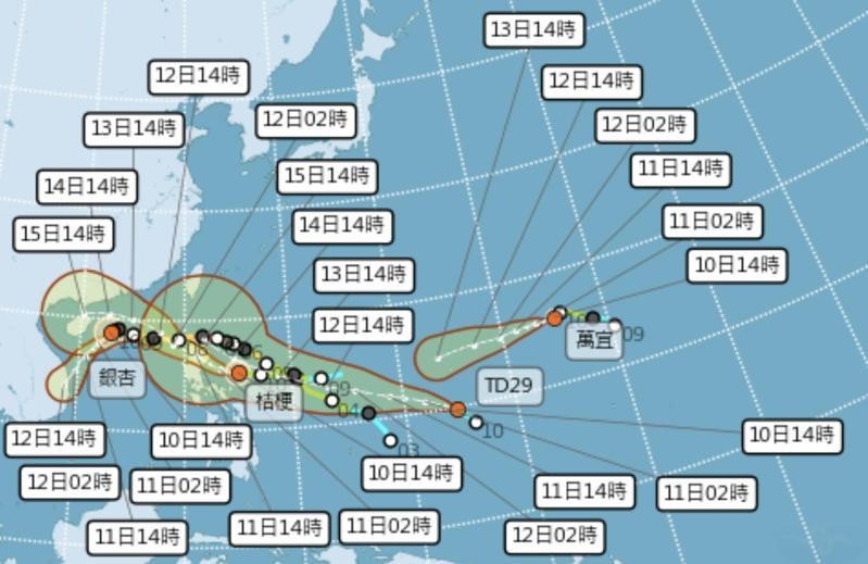 香港新聞網11月11日電 今年深秋,太平洋上同時出現了低緯的四個颱風:銀杏、桔梗、萬宜和最新生成的天兔,這一現象相當罕見。若再加上10月初的山陀兒和潭美,這一波秋颱的爆發可謂前所未見。與夏季颱風相比,秋颱的威力通常更為強大。今年已有六個秋颱來襲,帶來的風雨交加,許多颱風創下新紀錄。據台灣《聯合報》報道,眼下,天兔可能侵台,防颱工作刻不容緩。