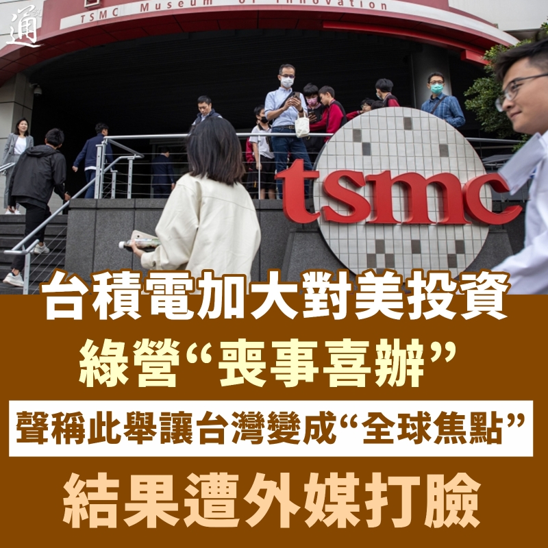 台積電加大對美投資 綠營“喪事喜辦”遭外媒打臉!香港新聞網3月5日電 台積電加大對美投資引發台灣輿論憂心忡忡,綠營還在喪事喜辦? 日前,台積電董事長魏哲家現身美國總統特朗普記者會,宣布增加1000億美元投資美國先進半導體製造,包含3座新晶圓廠、2座先進封裝設施,以及1間研發中心。消息一出,台灣輿論嘩然,質疑台積電要變“美積電”。 在一片“賣台”的討伐聲中,綠營又拿出“讓世界看見台灣”這種話術來洗白,聲稱此舉讓台灣變成“全球焦點”。 有台灣綠媒自嗨道,“魏哲家是台灣第一個在美國白宮開記者會的上市公司董事長,可想而知有多麼重要!” 台經濟部門負責人郭智輝也說,(這說明)台灣完全有價值,更變成全球矚目的焦點,因為台積電的成就,全球都依賴台灣所生產的芯片。 他還強調即使台積電將部分研發移至美國,先進製程仍會留在台灣。台積電2奈米、1.6奈米明年不會到美國生產。中國國民黨“立委”吳宗憲則揭露他在“用話術在騙人民”,明年不在美生產只是因為硬體還沒完成,過了明年恐怕這個保證就無效了。 台灣有媒體人也自欺欺人道,沒有入股英特爾,也沒有課稅100%,只是在美國做多一點的投資,只要技術不外流,能夠取得美國重回製造最大的商機,這是對台積電最好的結果。認為台積電會從“台灣的台積電”發展到“世界的台積電”。 台積電去美國投資,是展現台灣半導體實力,強化台灣的技術領導地位。民進黨“立委”林楚茵亦在社交媒體臉書喊口號稱, “台積電根留台灣布局海外,讓Team Taiwan再次發功”;民進黨北市議員趙怡翔宣稱,特朗普因為台積電投資得到經濟利益回饋,“台美關係”的價值因此變得更加重要,“台灣的戰略重要性不減反增”。