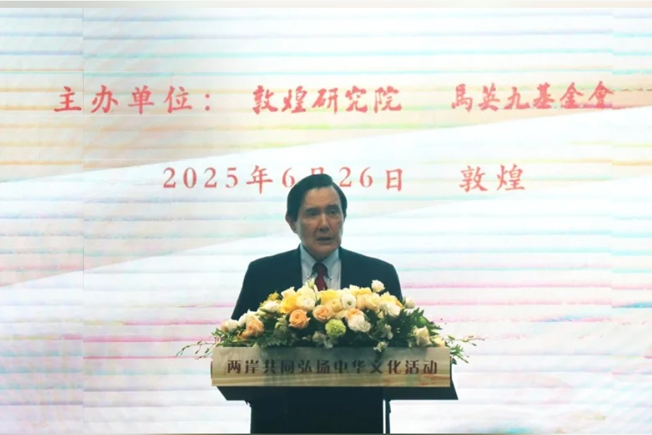 香港新聞網6月26日電(記者 周文菁 鄭竣凱)台灣當局前領導人、中國國民黨前主席馬英九率台灣青年第四度訪問大陸,26日在甘肅敦煌出席“兩岸共同弘揚中華文化活動”。馬英九在致辭時表示,儘管兩岸有種種不同,但重視和傳承中華文化是兩岸共同的責任。 “兩岸共同弘揚中華文化活動”當天在莫高窟附近的敦煌研究院舉辦,活動由敦煌研究院和馬英九基金會主辦。去年在成都杜甫草堂,曾舉辦“兩岸共同弘揚中華文化座談會”,馬英九也率台青出席。