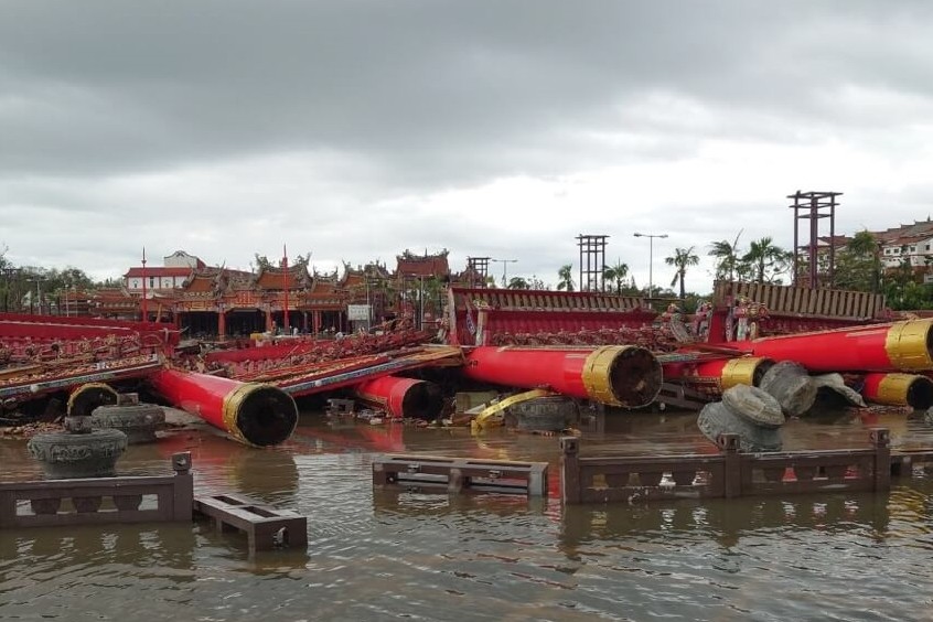 受颱風“丹娜絲”影響,南鯤鯓代天府知名地標大牌樓不敵強風倒塌。圖源:台灣“中央社” 颱風吹塌南鯤鯓代天府牌樓,有民眾唏噓,有信眾不捨,有台灣網友則想起年初的時候,南鯤鯓代天府抽出的下下籤,感慨“籤文真準”。 據悉,南鯤鯓代天府是全台信仰王爺規模最大、廟史最悠久的“台灣王爺總廟”,每年農曆開春固定會為台灣運勢抽籤。今年正月初一,南鯤鯓代天府抽出下下籤,掛首“聞仲西征十絕陣被破後逃”,籤詩為“一重江水一重山,誰知此去路又難,任他改求終不過,是非終久未得安”,籤下註解官事“大凶”、功名“無望”、求財“無利”等,籤註則是“屋漏偏逢連夜雨、行船又遇打頭風”。 巧合的是,該籤與南鯤鯓代天府在2017年,即蔡英文上任的第一年所抽的完全相同。另外,今年正月初一,苗栗縣信仰中心之一的玉清宮為台灣整體運勢的所抽的“人民籤”,也是下下籤。 南鯤鯓代天府牌樓因颱風而倒塌,此時又正值“大罷免”關鍵時刻,而台南又是賴清德的“本命區”,不少人聯想到當下現實,引發政治聯想。 有網友認為,掛首“聞仲西征十絕陣被破後逃”是指賴清德近期發表“團結十講”,前四講內容都遭各方批評錯誤與不滿,因此也臨時取消第五講的相關事件,也認為可能與“大罷免”有關,暗示“德不配位”。 台中市副市長鄭照新7日在臉書發文稱“相信老天爺自有一把尺、相信天理人心”,并標註“南鯤鯓”。有台媒指出,該帖文似乎也意有所指與“大罷免”及當下台灣的政治議題有關。 台前“立委”郭正亮也在節目上表示,籤文的第三句“任他改求終不過”很準,“連神明都看不下去”。郭正亮認為,賴清德沒看到民生問題,只在乎“大罷免”,“團結十講”根本是“仇恨十講”,結果“本命祖廟”遭到災損,“這就是天意”。 台灣《聯合報》文章則直言,籤文是示警,提醒“主政者”謹言慎行。然而,賴清德似乎不願“與神同行”,造成台灣風雨飄搖。 綠營不甘示弱。民進黨台南市“立委”賴惠員稱社會大眾是過多聯想,噴政治口水很無聊。有親綠網友高喊“應驗藍白亂政,大罷免大成功”,有青鳥則發文抹黑南鯤鯓代天府,讓眾人驚呼“連神明都要被出征”。 台灣網絡論壇PTT揭露,有青鳥發文“咒罵”代天府,稱蔡英文當局時期,代天府幾乎都抽出下下籤,“全部爛籤”,而馬英九當局時期卻抽出中上籤,還揚言蔡英文8年是“盛世”,“難道還要相信這個‘鬼廟’嗎?”對此,台灣網友驚呼,“連神明都要被打成‘雜質’了!” 輿論不斷發酵成政治論戰,廟方只好出面“滅火”。南鯤鯓代天府總幹事侯賢名表示,牌樓是被強颱風所吹垮,16級風是50多年來罕見的強風,尤其代天府四周空曠,又正對著強風登陸的西海岸,難抵強風肆虐倒塌,不需要做不相干的政治聯想,這是天災地變,和籤文毫無關係,眼下是如何善後重建比較重要。 颱風“丹娜絲”6日深夜在台灣嘉義縣登陸,嘉義、台南、雲林等地觀測到16級到17級強陣風,中南部地區受災嚴重,南鯤鯓代天府大牌樓也因不敵風雨轟然倒塌。 據悉,南鯤鯓代天府牌樓迄今已有約43年歷史。其採用雙排共12根檜木穩定結構,最粗直徑達81.8釐米,高達14米,是亞洲地區最大的五門式木作牌樓。廟方表示,該牌樓是以古代工藝所建,立柱均為台灣檜木,且都是罕見的千年檜木,如今每根檜木要價恐需新台幣2000萬到3000萬元,損失無法估量。(完) 【編輯:張依珊】