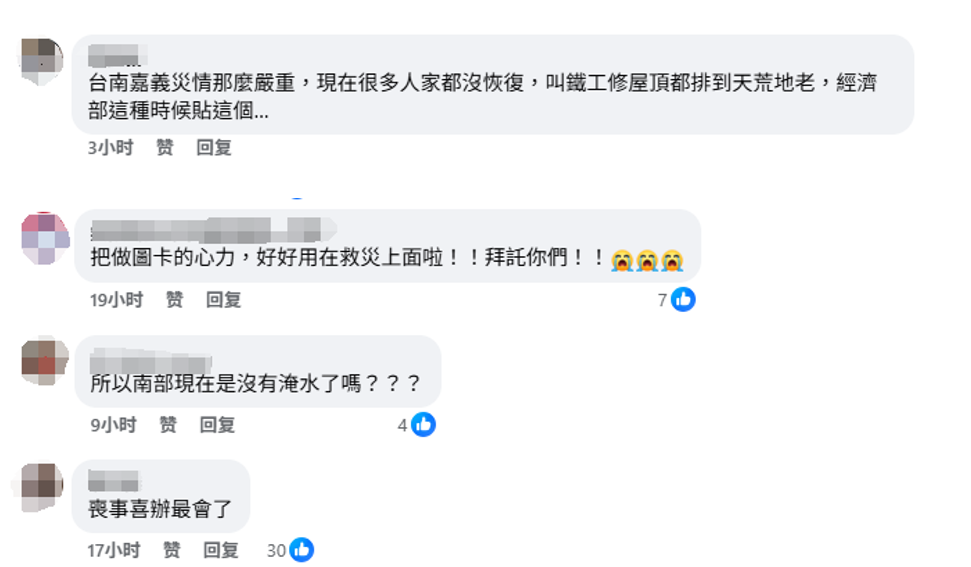 網友評論 還有不少網友質疑經濟部門的帖文在“說謊”,真實的淹水情況和帖文描述的“改善後”情形有很大出入,諷刺經濟部門“真的很敢”,恐怕受災地區民眾看到帖文“會氣死”。