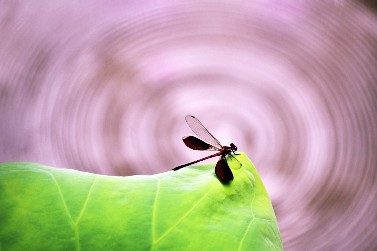 一隻善變蜻蜓停在荷葉中間,像舞者站在舞台的中央,有一種孤獨感,眾聲喧囂,天地靜寂,傾聽靈魂的歌唱。(完) 【編輯:程敏璇】