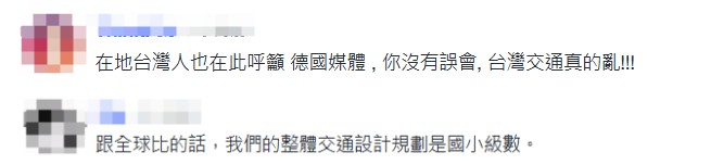 台灣《聯合報》也批評稱,“觀光署”官員的點評撈過了界,既畫錯重點,又得罪泰國。台灣觀光近年來表現差強人意,而泰國觀光排名一直名列前茅,台灣被外媒報道說交通差,竟想拿觀光優等生來當墊背,不思他山之石攻錯,還真是令人汗顔。 此外,還有網友抱怨台灣交通狀況真的很差,“在地台灣人也在此呼籲德國媒體 , 你沒有誤會, 台灣交通真的亂”“跟全球比的話,我們的整體交通設計規劃是國小(小學)級數”。