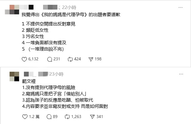 圖為台灣網友評論截圖 不過,台當局衛福部門“次長”林靜儀卻表示,對於考題在高中生之間引起很大討論,感到有些意外,但高中生反映往往是很直覺的,正好提供一個機會,讓大家想想當某些政策與自己切身相關時,是否還能一樣客觀、公平地看待,重新思考相關的法律與政策。她認為,隨著文化變遷,未來應該持續開放相關議題討論的空間。 長期推動代理孕母議題的“立委”陳昭姿表示,理解考生們不適的感受。她認為,題目將學生局限在單一敘事中,限制了思考,若是設計成“知性題”(是否支持)或“情意題”(願不願意支持),或許較能引導思考,也更尊重學生的感受。 面對質疑,新北市教育局昨天回應,這份模擬考試卷屬於廠商出版品,並非教育局統一命題或指定教材;試題是由台灣翰林出版社自行邀請教師命題、審題,提供給各校作為模擬考練習,各校自主決定是否採用。 試卷出題方翰林出版社則在今天下午發出道歉聲明,承認審題把關不周,將採取措施檢討改進命題和審題流程。 據悉,2024年12月,親綠機構“台灣民意基金會”曾公布民調稱,有近五成的台灣民眾贊成“代理孕母”合法化,且年輕人支持度高。當時,“台灣民意基金會”董事長游盈隆還說,該議題無法成功推動,主要是政治問題,不是台灣社會不能接受。 目前,台當局衛福部門雖然在“人工生殖法修正草案”中脫鉤處理代理孕母議題,但當時的負責人邱泰源表示,會用最開放的態度廣納意見。今年3月,邱泰源還表示,已啟動委託研究計劃,探討訂定代孕專法可行性。(完) 【編輯:張依珊】