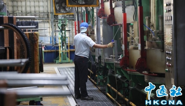 圖為台灣新北市新莊區一間工廠員工仔細操作加工機具(台灣“中央社”資料圖)