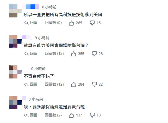 台灣網友評論截圖 值得一提的是,今年以來,美國社會陸續出現不少反對“協防”台灣的聲音。5月,美國智庫“昆西國家事務研究所”高級研究員邁克爾·史文直言,台灣不是美國的核心利益。9月,美國智庫“國防重點”軍事分析主任詹妮弗·卡瓦納撰文表示,台灣不值得美國開戰。 而美國副總統萬斯5月曾發表講話稱,未來美國將轉向以保護美國核心利益為基礎的戰略,不會再打無意義的戰爭。台灣輿論解讀認為,若台海發生衝突,可以確定美國不會來“救”台灣。(完) 【編輯:張依珊】
