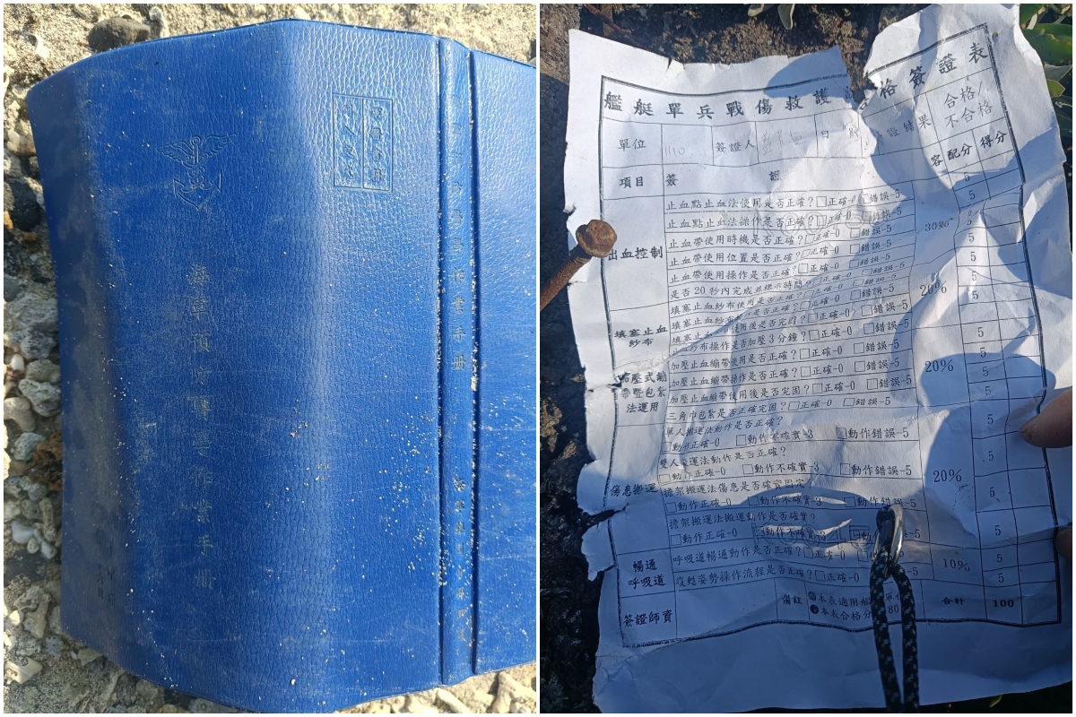 (本文圖片均源自臉書“澎湖交通觀察日誌”) 臉書“澎湖交通觀察日誌”昨天晚上發出的一則投稿,指控台海軍在澎湖馬公市蒔裡海邊亂丟垃圾。投稿者附上地圖定位,并表示,在其撿拾的垃圾中,發現疑似來自台海軍的物品,當中包括“金江軍艦艦長-余濬廷”職章、海軍預防醫學作業手册封面、海軍大盤帽、漆罐、樣品油及樣品瓶等。這些物品上標註有“高江軍艦”及“單位 1110”等字樣。