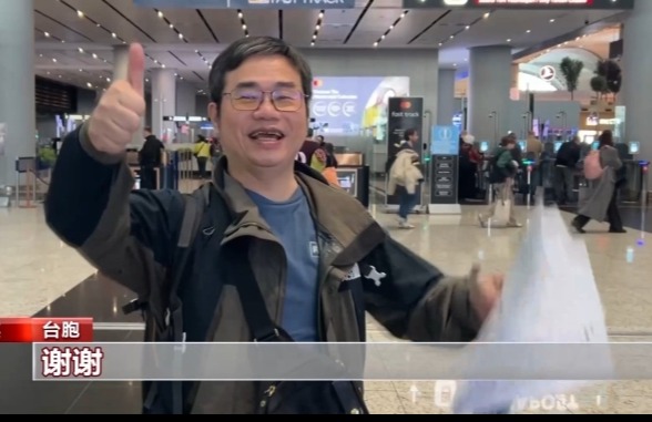 台胞對大陸表示感謝(央視圖片) 據央視新聞報道,這批台胞來自台灣同一家旅行社的三個中東團,原本計劃結束伊斯坦布爾行程後,經由阿聯酋阿布扎比返回台北。但2月28日美以對伊朗發起軍事打擊後,中東多國關閉領空,大批航班取消。 滯留期間,這批台胞至少4次改簽機票,但航班顯示都是無限延期。 後經大陸有關方面協調,他們改乘東航航班從伊斯坦布爾飛抵上海中轉,將於10日上午分別搭乘航班飛往台北松山機場、桃園國際機場返台。 (完) 【編輯:淩玉輝】