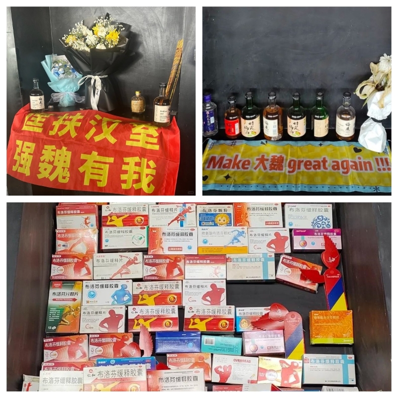 除了獻上止痛藥,有大陸年輕人還製作了諸如“匡扶漢室,強魏有我”的標語,甚至還有印上“Make 大魏 Great Again”的錦旗。