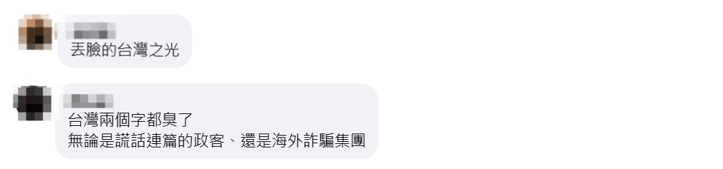 對於台灣人再次涉及電信詐騙的醜聞,台灣網友直言“丟人”,“丟臉的台灣之光”“台灣兩個字都臭了,無論是謊話連篇的政客,還是海外詐騙集團”。
