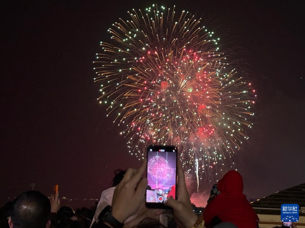 馬年農曆大年初一,廈門、金門同時燃放焰火(圖源:新華社)