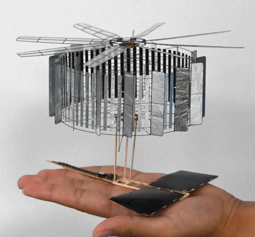 北航科研團隊研發的太陽能動力微型無人機。 新華社 微型飛行器得益於小體積、輕質量、高機動等特點,能够在狹小空間執行拍照、探測和運輸等特種任務,在國民經濟領域擁有廣泛應用前景。然而此類飛行器普遍存在飛行時間短的痛點問題,尤其當重量小於10克時,其飛行時間一般不超過10分鐘。究其原因,目前微型飛行器一般采用傳統的電磁電機作為發動機的驅動部件,電磁電機在微型化後轉速高、發熱大,能量轉化效率急劇下降,甚至降到10%以下。微型電磁電機效率下降後,如果采用供電方便的自然太陽光作為能量來源,受限於太陽能電池的面積,很難滿足飛行需求。 為了解決上述難題,北航科研團隊從微型發動機的原理方面尋求突破,提出一種新的靜電驅動方案,研製在微小尺寸下轉速低、發熱小、效率高的微型靜電電機,并成功試飛靜電飛行器“CoulombFly”。該飛行器主要由靜電發動機和超輕質高壓電源組成,具備低功耗(0.568瓦)和高陞力(30.7克每瓦)優勢,首次實現了微型飛行器在純自然光供能下的起飛和持續飛行。 靜電發動機的核心是靜電電機,它是一種依靠靜子和轉子間的庫侖力(Coulomb force)來產生連續旋轉運動的新型微型電機,具備結構簡單和無需繞組的優勢,其高電壓(千伏級)、低電流(微安級)的工作特性也使其在工作過程中發熱少且無明顯紅外特征。相比傳統電磁電機,靜電電機表現出了顛覆式的效率和功耗特性,在小質量(5克以內)情況下,其能量轉化效率可達傳統電磁電機的10倍以上,產生相同升力所需功耗僅為電磁電機的1/10以內,因此即便采用小尺寸太陽能電池,也可以為微型飛行器提供飛行所需功率。 靜電電機雖然效率高、功耗低,但仍需要千伏級高壓電流來驅動,然而傳統高壓電源由於體積和重量過大,無法搭載在微型飛行器上。因此團隊還針對飛行應用場景,研製了千伏級超輕質高壓電源,主要包括太陽能電池和升壓電路兩部分,其中升壓電路可以在1.21克的重量下,將太陽能(或鋰電池)輸入的低壓直流電,轉換為4 - 9千伏的高壓直流電,相比美國斯坦福大學研發的同類技術升壓比提高了92%,這讓高壓電流在微小尺度下不再那麼難以獲取。 在微型靜電電機和超輕質高壓電源的助力下,CoulombFly的整機僅有巴掌大小(翼展20厘米),重量比一張A4紙還輕(4.21克),尺寸和重量分別是此前世界最小、最輕太陽能飛行器的1/10和1/600。更進一步,團隊還提出一款翼展8毫米,質量9毫克的超微型靜電飛行器,飛行功耗不到1毫瓦,展示了靜電電機在飛行器進一步微型化中的巨大潛力。 在本成果之前,此領域的最高水平成果是哈佛大學2019年在Nature發表的Robobee飛行器,但仍需采用人工光源(三倍太陽光)才能實現持續飛行,而本成果僅依靠自然光即可實現持續飛行,可極大拓展此類飛行器的使用範圍,在微型飛行器的發展進程中具有里程碑意義。(完) 【編輯:丘志彬】