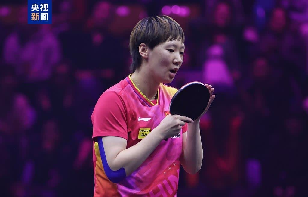 王曼昱(圖源:央視新聞) 當晚,WTT法蘭克福冠軍賽女單決賽,王曼昱4-2戰勝隊友王藝迪,獲得冠軍。六局比分為:11-7,10-12,11-3,7-11,11-8,11-8。中國乒乓球隊包攬女單冠亞軍。