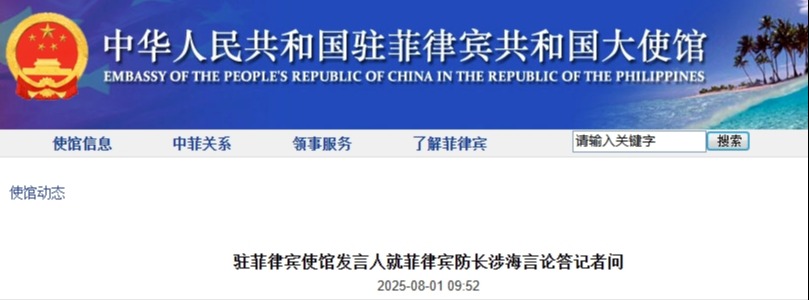 中國駐菲律賓大使館網站截圖 問:12月24日,菲防長特奧多羅發表聲明稱,美國在菲部署中程導彈完全正當、合法,無可指摘,并稱中國共產黨在批評菲適度能力建設的同時,卻持續擴充其核武庫和彈道導彈能力,支持海外犯罪集團和顛覆性組織,在中國國內不尊重人權。使館發言人對此有何評論? 答:菲律賓防長無端指責中國,惡意攻擊中國共產黨,有關言論充滿意識形態色彩及陣營對抗和冷戰思維,中方對此堅決反對并予以強烈譴責。 這不是這位菲防長首次發表類似的出格和荒唐言論。他多次攻擊抹黑中國和中國共產黨,限制阻撓中菲軍事接觸交流,甚至公開聲稱在涉海分歧上對話和協商是最無用的。上述言行與馬科斯總統希望通過對話推動海上局勢降溫的表態背道而馳,與兩國外交部門通過對話管控海上分歧的努力背道而馳,其用意何在,為誰代言,令人疑惑。 關於美國在菲部署中導問題,中方的立場是一貫的、明確的。本地區需要和平與繁榮,不需要中導和對抗。我們再次敦促菲方正視地區國家和人民呼聲,按照此前公開承諾盡快撤走“堤豐”中導系統,不要在錯誤的道路上越走越遠。(完) 【編輯:丘志彬】