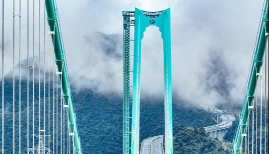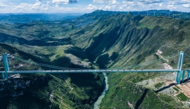 這是1月17日拍攝的花江峽穀大橋(無人機照片)。新華社圖片 花江峽谷大橋因跨越被譽為“地球裂縫”的花江大峽谷而得名,是貴州省六枝至安龍高速公路的控制性工程。 項目資料顯示,大橋為鋼桁樑懸索橋,全長2890米,其中主橋跨徑1420米,橋面至水面高度625米。建成後,會成為新的世界第一高橋、世界第一的山區跨徑橋樑。 據了解,此次完成的鋼桁樑吊裝共分93個節段,樑段總重量達2.1萬餘噸,屬於橋樑主體結構施工的重要組成部分。後續大橋還將進行主纜纏絲、塗裝作業,同時進行鋼樑及橋面附屬結構的安裝。 作為全國唯一沒有平原的省份,貴州近年來已在126萬個山頭間建造了3萬多座橋樑。目前,全世界前100座高橋,有近一半在貴州。 通車後,從六枝到安龍無需再走盤山公路繞行,開車從兩小時縮短至兩三分鐘即可穿越花江大峽谷。作為六枝至安龍高速的重點控制性工程,花江峽谷大橋的建成將進一步完善貴州交通網絡。(完) 【編輯:林曉惠】
