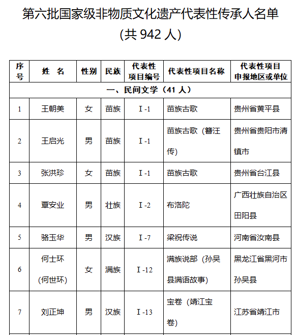 第六批國家級非物質文化遺產代表性傳承人名單(節選) 【編輯:彭玉婷】