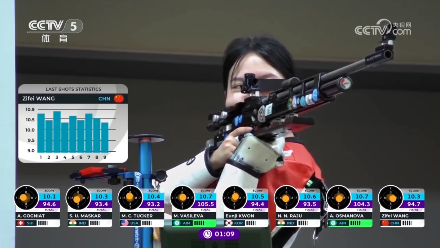 央視體育視頻截圖 據新華社報道,女子10米氣步槍項目中國隊共有5位選手出戰,資格賽階段她們分別排在第二、三、五、十一和十二位。根據國際射聯規則,每隊至多只能有三個正式名額,另兩位選手持RPO名額,只能參加資格賽階段比賽。資格賽排在第二和第五的韓佳予和範馨仡是RPO名額選手,因此只有排名第三的王子菲晉級到決賽階段。 在上周的女子50米步槍三姿決賽中止步第四名後,王子菲迅速調整狀態,在當天的決賽中發揮出色。她在第二階段的淘汰賽中逐漸建立起領先優勢,14槍中僅最後一槍低於10.5環,展現了極強的心理素質和競技穩定性。最終,她以1環優勢摘得金牌,首次登上世界杯賽事的最高領獎台。去年,她曾在世界杯巴庫站女子10米氣步槍項目中獲得銀牌。 韓國選手權恩吉獲得該項目銀牌,巴黎奧運會銅牌得主、瑞士選手戈尼亞特摘得銅牌。 本站世界杯是射擊項目2025年度首場國際賽事,中國隊派出39名隊員參加步手槍項目的比賽,其中包括盛李豪等奧運冠軍。截至目前,中國隊以3金1銀1銅共5枚獎牌暫居本站世界杯獎牌榜首位。 當地時間8日將迎來女子10米氣手槍和男子25米手槍速射決賽。(完) 【編輯:彭玉婷】