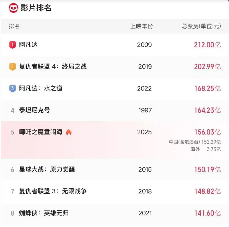 《哪吒2》全球票房破156億,距《泰坦尼克號》還差8億分享到:
