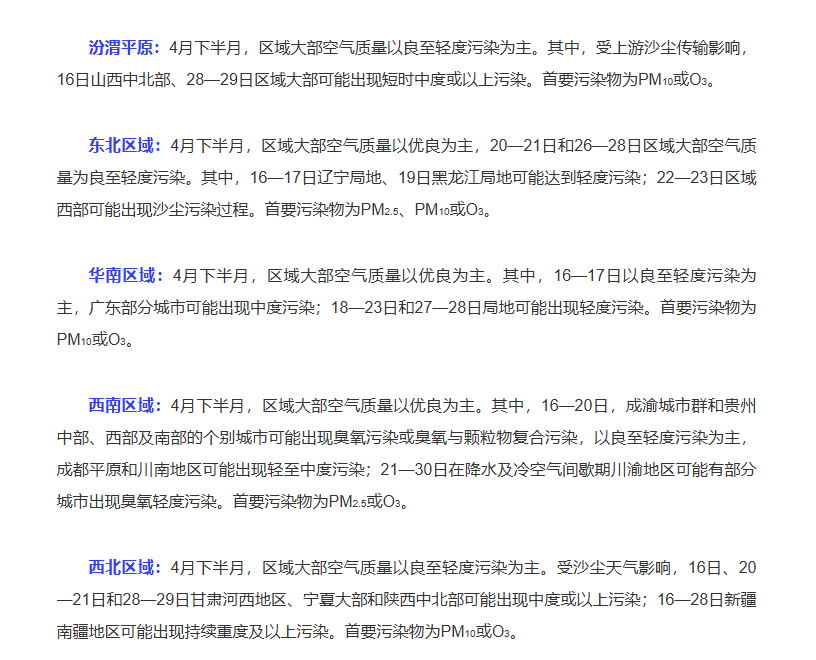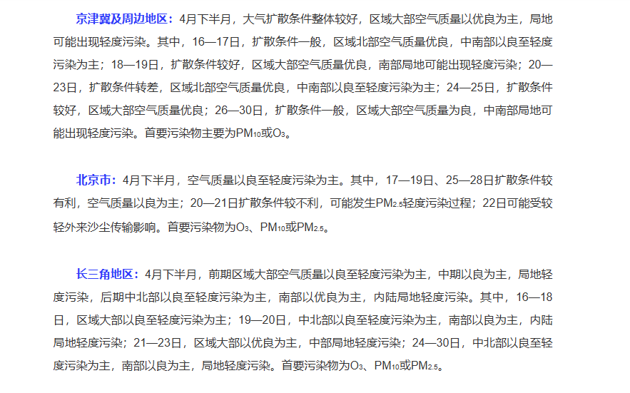 4月下半月中國大部空氣質量以優良至輕度污染為主分享到: