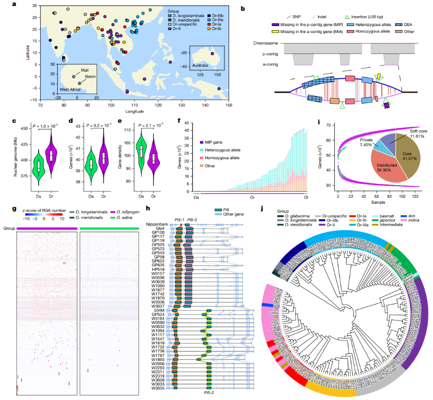 野生稻和栽培稻泛基因組圖譜 圖源:中國科學院分子植物科學卓越創新中心 據央視新聞報道,亞洲栽培稻是全球數十億人的主糧,其馴化歷史可追溯至一萬年前的普通野生稻。面對全球人口增長和氣候變化加劇的雙重壓力,如何將野生稻歷經萬年錘煉的“生存智慧”注入現代品種,培育出兼具高產潛力與抗病抗逆特性的“超級水稻”已成為破解糧食安全困局的重大課題。然而,傳統依賴單一參考基因組的研究模式僅能捕捉水稻遺傳多樣性的冰山一角。因此,需要構建一個高質量、大規模的野生稻泛基因組,深度解析其廣泛的多樣性,全面挖掘其耐逆、抗病等優良性狀的遺傳變異寶庫。 中國科學院分子植物科學卓越創新中心韓斌研究團隊整合具有代表性的129份普通野生稻和16份亞洲栽培稻資源,進行高質量的基因組測序和從頭組裝,構建了一個可以覆蓋野生稻和栽培稻全面遺傳景觀的泛基因組圖譜。這也是該研究團隊繼全面解析水稻馴化路線和構建首個栽培稻-野生稻泛基因組草圖之後,在水稻基因組研究和進化領域取得的又一項重大突破。