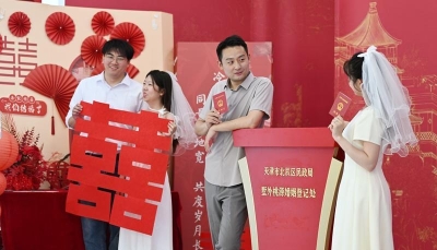 香港新聞網5月20日電 5月20日(520)因普通話諧音“我愛你”,中國多地民政局迎來結婚登記高峰,北京、上海、廣州等地登記量較平日增長50%以上。各地推出線上預約及“520”特色證書服務,社交平台上網友熱議“520比七夕更浪漫”。 民政部數據顯示,這一天全國結婚登記量超30萬對,北京突破1.2萬對,上海、廣州分別達9000對和8000對,增幅超50%。 為應對登記高峰,上海推出“520”限定結婚證書,設計融入愛心與玫瑰元素;北京開通線上預約系統,減少排隊時間;廣州部分民政局延長服務時間至晚8點,並提供免費拍攝紀念照。杭州、成都等地還推出“520”主題登記儀式,吸引年輕情侶。 在社交平台上,大量網友留言表示,“520”因簡單易記的諧音成為年輕人結婚首選,網友@China__News評論:“520比七夕更浪漫,數字愛情更有現代感!”部分用戶分享登記現場照片,熱議特色證書與浪漫氛圍。