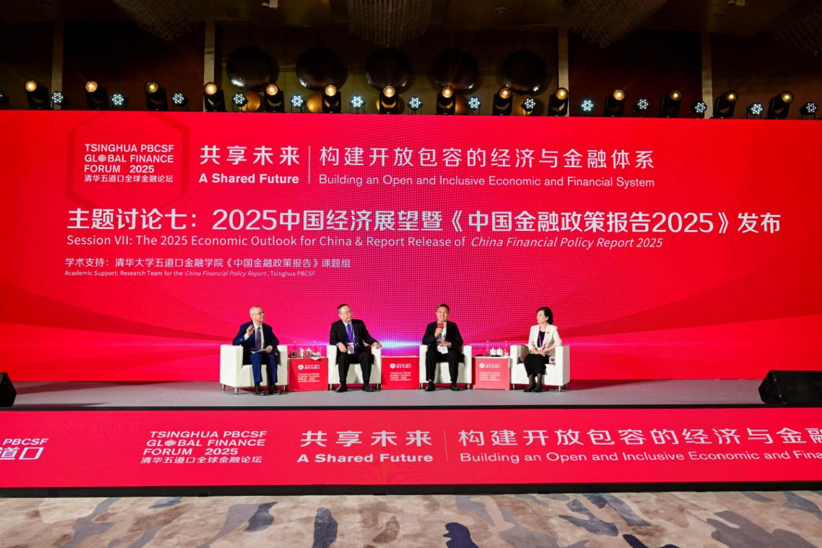 圖為主題討論七的報告發佈現場 本次論壇中,清華大學五道口金融學院發佈2025 中國經濟展望暨《2025中國金融政策報告》。中國人民銀行金融研究所所長丁志傑在該報告的發佈演講中表示,當前中國金融改革處於新的重要關口,金融系統在內外部壓力中要加快改革步伐,繼續提升體系韌性。 中國國際經濟交流中心副理事長王一鳴指出,美國加征關稅的舉措背後是三重動機交織——重建美國製造業、以關稅收入緩解美國財政壓力、以關稅手段重構全球利益分配,而中國需以結構性改革激活內需、強化金融體系適配性,在危機中探尋轉型機遇,培育新質生產力。