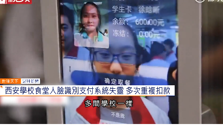 系統最嚴重一次在10秒內重複扣了4次、合共48元人民幣。網上視頻截圖產。 一般家長投訴後,食堂都會全額退回款項,不過家長表示要經常用手機應用程式查看數據,很浪費時間並且讓他們覺得很煩惱。 家長與學生、老師了解情況後,得出結論,事件相信是因為學生同一時間去食堂用膳,人多擠擁期間,臉部稍為晃動,就會重複扣款。 學校表示,最初引入刷臉支付系統原意是要取代“飯卡”,除了提高學生排隊用餐的效率,也可免卻學生遺失飯卡等問題。針對事件,學校表示將儘快提升技術以解決問題,避免同樣事件再發生。同時,如果有需要,學校也會提供其他支付方式讓學生使用。(完) 【編輯:關秀英】