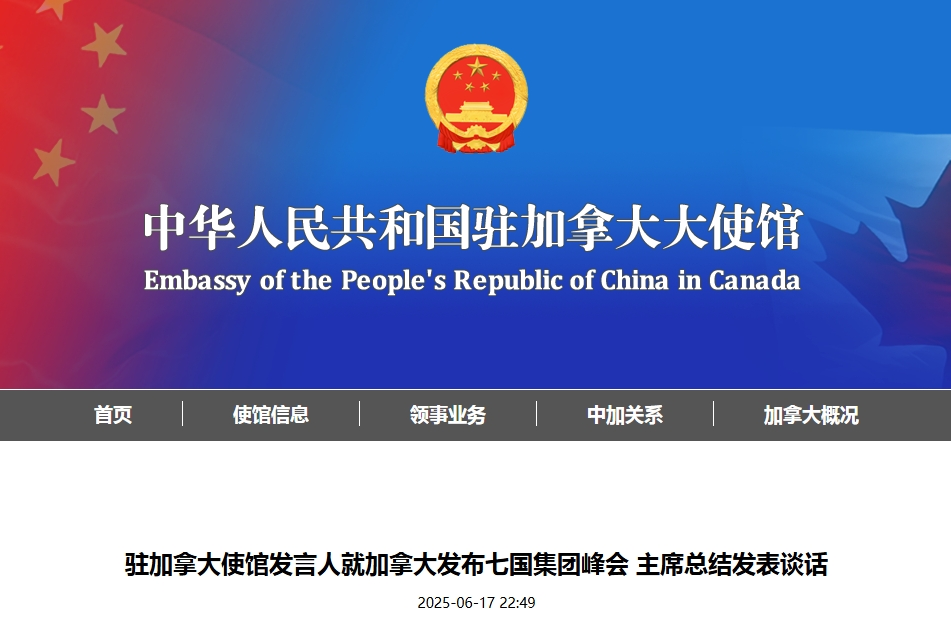 中國駐加拿大使館網站截圖 中國駐加拿大使館發言人18日說,中國經濟的發展壯大遵循的是國際貿易準則和市場經濟規則,靠的是超大規模市場優勢、齊全的產業配套、豐富的勞動力資源和充分的市場競爭等。那些濫施無理關稅、大搞單邊貿易霸凌、把經貿問題政治化武器化的行徑才是扭曲市場的有害行為,是對多邊貿易體制的最大破壞。 發言人表示,中方始終致力於同直接有關當事國通過談判磋商妥善管控和解決有關爭議,共同維護東海和南海的和平穩定,維護航行和飛越自由以及海上航道安全。在南海不斷煽風點火、挑動對抗的個別域外國家才是破壞南海和平穩定的最大風險源。 發言人指出,台灣問題純屬中國內政,不容任何外來干涉。堅持一個中國原則是維護台海和平穩定關鍵所在。破壞台海和平穩定的是“台獨”分裂活動和外部勢力縱容支持。如果七國集團真心維護地區和平穩定,就應該切實恪守一個中國原則,停止干涉中國內政,停止以任何方式向“台獨”分裂勢力發出錯誤信號。 發言人強調,中國始終是世界和平的建設者、國際秩序的維護者、全球發展的貢獻者。中國將高舉和平、發展、合作、共贏旗幟,在堅定維護世界和平與發展中謀求自身發展,以自身發展更好維護世界和平與發展。我們奉勸七國集團認清世界大勢,停止干涉他國內政,停止損害別國發展,停止動輒操弄涉華議題,多做有利於國際社會團結合作的事情。(完) 【編輯:淩玉輝】