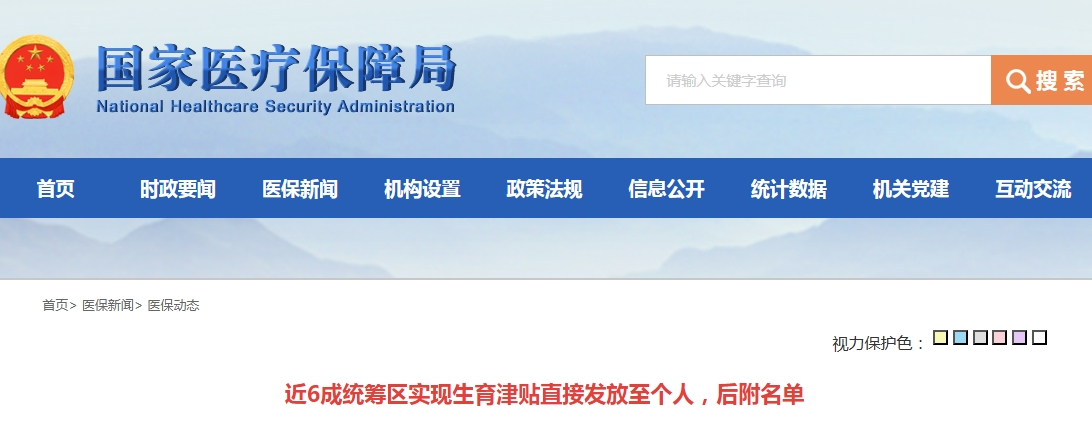 (圖源:中國國家醫保局網站截圖) 據介紹,截至6月12日,全國13個省份所有統籌區生育津貼均可直接發放至個人,分別為山西、內蒙古、黑龍江、上海、福建、山東、湖北、海南、重慶、甘肅、青海、寧夏、新疆生產建設兵團。同時,雲南省也於近日正式發文,將於7月底前在全省全面實現生育津貼直達個人。 去年10月底,中國《關於加快完善生育支持政策體系推動建設生育友好型社會的若干措施》對外發布,共四個方面13條具體措施,包括首次提出要建立生育補貼制度。近日,中國官方印發《關於進一步保障和改善民生 著力解決群眾急難愁盼的意見》,其中要求“支持引導有條件的地方將生育保險生育津貼按程序直接發放給參保人”。 據中國國家衛生健康委網站,當前,中國的生育支持措施主要集中在經濟支持、服務支持、時間支持、文化支持四個方面。具體措施包括,國家將3歲以下嬰幼兒照護、子女教育費用納入個人所得稅專項附加扣除,2023年將標準從每個子女每月人民幣1000元提高到2000元;各省(區、市)普遍延長產假至158天及以上,超半數省份生育津貼支付期限不低於158天;各地均設立15天左右的配偶陪產假、5到20天不等的父母育兒假等。(完) 【編輯:淩玉輝】