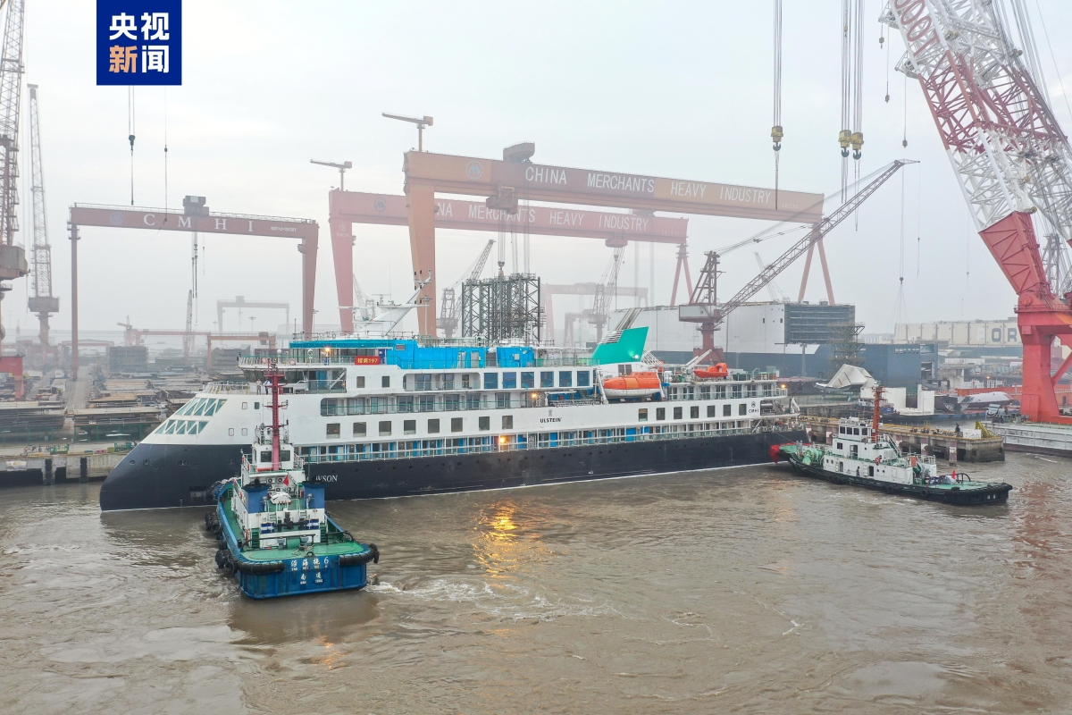 圖為中國首艘極地探險郵輪(圖源:央視新聞) 該極地探險郵輪集娛樂、休閑、美食、海洋探險、水上運動等設施於一體,是專門為南北極極地旅遊航線而打造。 該輪全長104.4米、寬18.4米,設計吃水5.1米,總噸位8076噸,最高航速15.5節,可承載249人,入級法國船級社(BV),具備全球無限航區航行能力。 同日,中國首艘氫電拖輪“氫電拖1”輪在山東港口青島港正式入列。