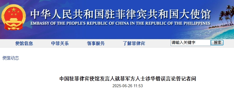 中國駐菲律賓使館網站截圖 中國駐菲律賓使館發言人26日說,中國是禁毒最堅決、政策最徹底、記錄最良好的國家,也是世界上列管物質最多、管制最嚴格的國家之一。中菲執法部門在打擊毒品以及其他跨國犯罪方面開展了良好合作。菲總統反有組織犯罪委員會代表團近期訪華,與中方執法部門就進一步加強打擊跨國犯罪達成了重要共識。 “我們堅決反對菲軍方個別人士信口雌黃,發表毫無根據、蓄意抹黑中國的言論。”發言人說。 發言人還指出,菲軍方個別人士為一己私利,甘當美國“印太戰略”馬前卒,反覆操弄涉海議題,不斷挑動激化矛盾。這種言行不僅無助於問題的解決,反而成為缺乏互信的根源以及解決問題的障礙。 發言人奉勸菲軍方個別人士停止惡意抹黑攻擊中國,順應民心民意,切實反躬自省,盡早回到通過對話協商解決分歧的正確軌道上來。(完) 【編輯:淩玉輝】