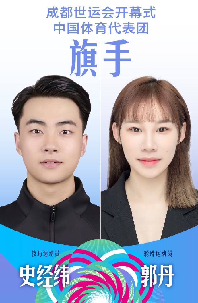 史經緯、郭丹將擔任成都世運會開幕式中國代表團旗手分享到: