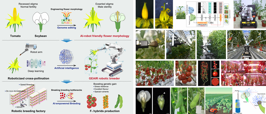 作物花型重塑與 AI 機器人協同設計實現智能自動化雜交育種。圖源:中國科學院遺傳與發育生物學研究所 綜合媒體12日報道,該研究由論文作者、中國科學院遺傳與發育生物學研究所研究員許操領銜,開創性提出“生物技術築基+人工智能賦能+機器人勞作”的智能育種新模式。 據介紹,“吉兒”機器人可在田間自動巡航,完成高精度授粉作業,實現雜交育種全流程智能化。結合從頭馴化、育種加速器等前沿技術,科研團隊構建了“智能育種工廠”,可快速定製優質作物新品種,顯著縮短育種周期、降低製種成本、提升育種效率。 研究特別聚焦大豆育種,團隊通過基因編輯技術創製出柱頭外露型雄性不育系,使作物花部結構更利於機器人精準識別與操作,有效解決了傳統雜交育種中“找不準花、看不清目標、下手沒輕重”三大技術難題。有望推動中國率先實現大豆雜交育種產業化,大幅提升產量,突破種源“卡脖子”困境。 許操表示,該成果標誌著中國率先建成完整的智能育種與制種技術體系,展現AI驅動農業科研的巨大潛力。《細胞》審稿人評價稱,此項研究是生物技術與人工智能深度融合的典範,為解決重大農業科技與產業難題提供了創新路徑,應用前景廣闊。(完) 【編輯:彭玉婷】