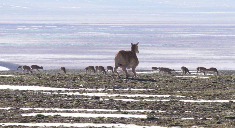 這隻撅著屁股的“藏羚羊”其實是一隻四足機器人(圖源:雲深處科技) “混跡”羊群 突破人類觀測野生動物距離限制 以藏羚羊為代表的珍稀物種,是青藏高原生態的重要指標。每年夏季,數以萬計的雌性藏羚羊,匯聚到可可西里無人區的卓乃湖畔等地產仔育幼。這里因此也被稱為藏羚羊的“大產房”。 “藏羚羊還有很多未解之謎,譬如它為何遷徙產仔,原因還眾說紛紜。藏羚羊的研究和保護需要依託科技的進步。”中科院西北高原生物研究所研究員連新明對媒體介紹,在青藏高原的極端環境下,工作人員面臨低溫、缺氧等惡劣氣候條件,崎嶇地形也為設備的進入設立重重障礙。中科院專家認為,機器人及人工智能技術進入可可西里,對科研、保護所發揮的作用值得期待。 在海拔4800米以上,可可西里無人區深處的卓乃湖,“機器藏羚羊”慢慢潛入藏羚羊群,與它們一起移動遷徙。 “這隻藏羚羊從設計到製作大概用了2個多月的時間,我們仔細研究了動物骨骼結構,在毛髮外形方面,第一次設計的效果不是那麼理想,又進行了二次設計,力求逼真。最後在海拔4800米的可可西里進行現場安裝調試,中科院專家對我們的外形製作非常滿意。雖然在高原的工作非常辛苦,但是能有機會參與可可西里無人區科研項目的仿真動物製作,為生態保護做點貢獻非常開心。” 外形製作團隊,蘇州白鹿鳴團隊負責人介紹,設計人員在機器藏羚羊的眼睛下方留了一個攝像頭的拍攝口,當機器藏羚羊緩緩融入藏羚羊群,就可以進行近距離觀測和零干擾的拍攝,避免了車輛和人員對藏羚羊的干擾和驚嚇。“機器藏羚羊突破了人類觀測野生動物的常規距離限制,將為藏羚羊行為研究提供更精準可靠的影像和數據。”