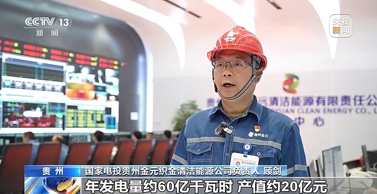 央視新聞視頻截圖 中國國家電投貴州金元織金清潔能源公司負責人 顧劍:該項目全部建成投運後,年發電量約60億千瓦時,產值約20億元,預計每年減排二氧化碳30餘萬噸,相當於植樹200萬棵。(完) 【編輯:張麗欣】