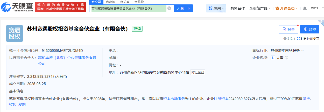 香港中通社8月29日電 8月29日,集商業、文化、地產、金融四大板塊的中國民企萬達集團資產出售迎來新進展。據天眼查,近日成立的“蘇州寬遇股權投資基金合夥企業”(下稱“蘇州寬遇”)總出資額達224.29億元(人民幣,下同),由騰訊、京東等13方共同出資,標誌著此前披露的48座萬達廣場出售交易初步落地。