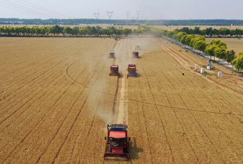 資料圖為河南省周口市商水縣張莊鎮張坡村拍攝的活動現場(無人機照片)。圖片來源:新華社 國家糧食和物資儲備局糧食儲備司司長羅守全介紹,今年小麥收購呈現三個特點。 收購進度快。今年小麥上市時間早,旺季收購較往年提前一周左右。收購工作開展以來,農民售糧踴躍,大多採取即收即賣方式,收購進度快於上年同期。截至目前,各類糧食經營主體累計收購小麥10016萬噸。 托市範圍廣。國家有關部門先後在河南、安徽、河北、江蘇、山東等地啟動最低收購價執行預案,中儲糧集團嚴格執行收購政策,適時增設收購庫點,加強人員、設備等要素保障,不斷提升現場服務水平。目前,已累計收購最低收購價小麥1300萬噸,牢牢守住農民“種糧賣得出”的底線。 市場運行穩。在最低收購價政策支撐下,糧食加工、貿易、儲備等企業有序購銷,小麥價格總體平穩,優質優價特徵明顯。隨著中秋、國慶臨近,麵粉消費即將進入傳統旺季,小麥市場購銷將進一步活躍。 下一步,國家糧食和物資儲備局將持續跟蹤夏糧收購進展,強化市場監測預警,狠抓調控措施落實,全力推動糧食價格保持在合理水平,確保夏糧旺季收購圓滿收官。(完) 【編輯:彭玉婷】