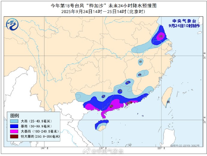 圖源:中央氣象台 受颱風“樺加沙”影響,9月23日至26日,福建東部、廣西中部南部、廣東、海南將有大到暴雨,局部大暴雨。受降雨影響,福建九龍江,廣東韓江、東江、北江、西江,廣西賀江、北流河、鬱江、南流江,海南南渡江、萬泉河等主要河流將出現明顯漲水過程,暴雨區內部分中小河流將發生超警以上洪水。 水利部於9月23日19時針對福建、廣西、海南啟動洪水防禦Ⅳ級應急響應,將廣東洪水防禦Ⅳ應急響應提升至Ⅲ級。廣東東部、福建南部和東北部、浙江東部南部等地部分地區降了大到暴雨,福建九龍江支流洛溪及沿海蘭溪、廣東沿海練江和龍江支流崩坎水、陝西漢江上游支流旬河和渭河支流澇河等14條河流發生超警洪水,最大超警幅度0.99米。 受9月21日以來的連續秋雨影響,漢江上游來水再次快速增加,23日19時,丹江口水庫入庫流量達到15300立方米每秒,“漢江2025年第3號洪水”在漢江上游形成。 另外,江蘇省氣象局提升重大氣象災害(暴雨)IV級為Ⅲ級應急響應命令:受颱風“樺加沙”外圍水汽與冷空氣共同影響,9月23日夜間至24日早晨,江蘇省沿淮及江淮之間北部已經出現區域性暴雨到大暴雨天氣。江蘇省氣象台已升級發布暴雨黃色預警。江蘇省教育廳發布提醒:各地各學校結合實際情況,必要時可停課停學。(完) 【編輯:彭玉婷】