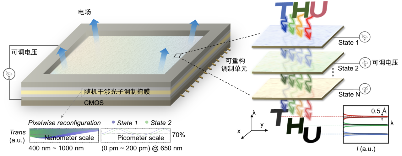 2025年5月方璐(右三)團隊訪問加那利大型望遠鏡 圖源:清華大學 光譜記錄著光在不同波長下的強度變化,揭示了物質與光的相互作用,是解析成分、結構與特性的“光學密鑰”。 長期以來,傳統光譜測量受限於分光採集與固化結構,光譜分辨率與成像通量間的固有矛盾始終是該領域未破解的科學難題。對此,科研團隊基於智能光子原理,創新提出可重構計算光學成像架構,將傳統物理分光限制轉化為光子調制與計算重建過程。 通過挖掘隨機干涉掩膜與鈮酸鋰材料的電光重構特性,團隊實現高維光譜調制與高通量解調的協同計算,最終研製出“玉衡”芯片。“玉衡”芯片僅約2厘米×2厘米×0.5厘米,卻可在400至1000納米的寬光譜範圍內,實現亞埃米級光譜分辨率、千萬像素級空間分辨率的快照光譜成像,能在單次快照中同步獲取全光譜與全空間信息,其快照光譜成像的分辨能力提升兩個數量級,突破了光譜分辨率與成像通量無法兼得的長期瓶頸,為高分辨光譜成像開闢了新路徑。