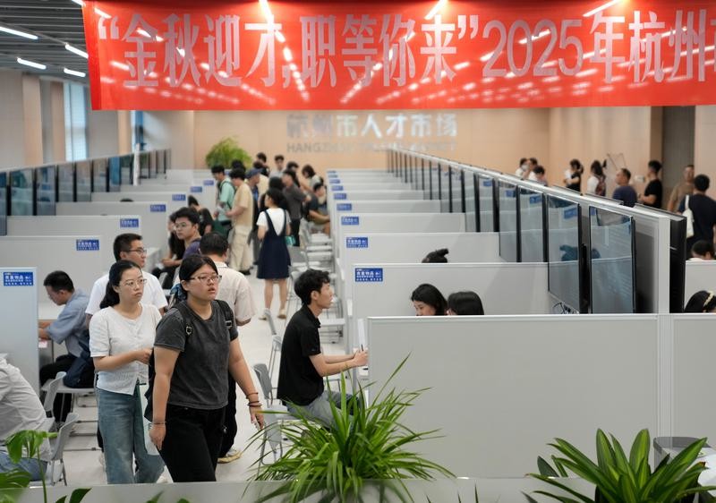 資料圖為2025年杭州市總工會秋季專場招聘會現場。圖片來源:新華社 從今年三季度各月看,受畢業季以及暑期高溫多雨部分戶外工作崗位減少等因素影響,7、8月份失業率環比有所上升,分別為5.2%、5.3%;9月份,隨著季節性影響減弱,失業率回落至5.2%,環比下降0.1個百分點。 中國31個大城市城鎮調查失業率1至9月均值為5.1%,與全國城鎮整體水平相比低0.1個百分點,其中一、二、三季度均值分別為5.2%、5%、5.2%。從三季度各月看,7、8月份,失業率分別為5.2%、5.3%,均較上年同期低0.1個百分點,9月份回落至5.2%。 中國國家統計局人口和就業統計司司長王萍萍當天表示,今年以來,中國經濟運行總體平穩,轉型升級穩步推進,就業主要指標運行基本平穩,重點群體就業保障有力。但也要看到,當前外部不穩定不確定因素較多,就業結構性矛盾較為突出,部分地區、部分行業、部分群體就業仍面臨一定壓力。下階段,要積極強化宏觀政策調節,著力穩就業、穩企業、穩市場、穩預期,進一步加大穩就業政策支持力度,推動就業形勢繼續保持穩定。(完) 【編輯:彭玉婷】