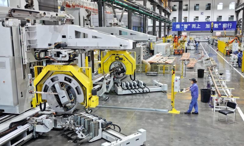 資料圖為哈爾濱電機廠智能製造車間,工人在進行生產作業(無人機照片)。圖片來源:新華社 其中集成電路製造、電子專用材料製造行業增加值分別增長22.4%、20.5%,工業機器人、3D打印設備、工業控制計算機及系統產量分別增長29.8%、40.5%、98%。新興產業茁壯成長,推動產業向高端化、智能化、綠色化轉型。 今年以來,中國繼續加大創新投入,推動新興領域投資擴產,促進新質生產力形成。前三季度,汽車製造業、鐵路船舶航空航天和其他運輸設備製造業投資同比保持兩位數增長。 前三季度,數字經濟蓬勃發展。規模以上數字產品製造業增加值同比增長9.7%,信息傳輸軟件和信息技術服務業增加值增長11.2%;規模以上高技術製造業中,智能無人機飛行器製造、智能車載設備製造增加值分別增長59.9%、25.1%。各種數字產品、智能終端設備日漸普及,大模型應用帶動企業算力需求增加,服務器產量同比增長11.5%。 前三季度,綠色轉型步伐穩健,新能源汽車、太陽能電池等新能源產品產量快速增長。與此同時,傳統產業加快設備更新與技術改造,化纖、建材等行業加快推陳出新,相關產品產量較快增長。(完) 【編輯:彭玉婷】
