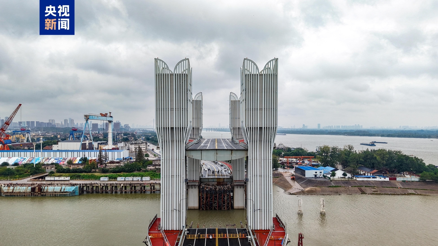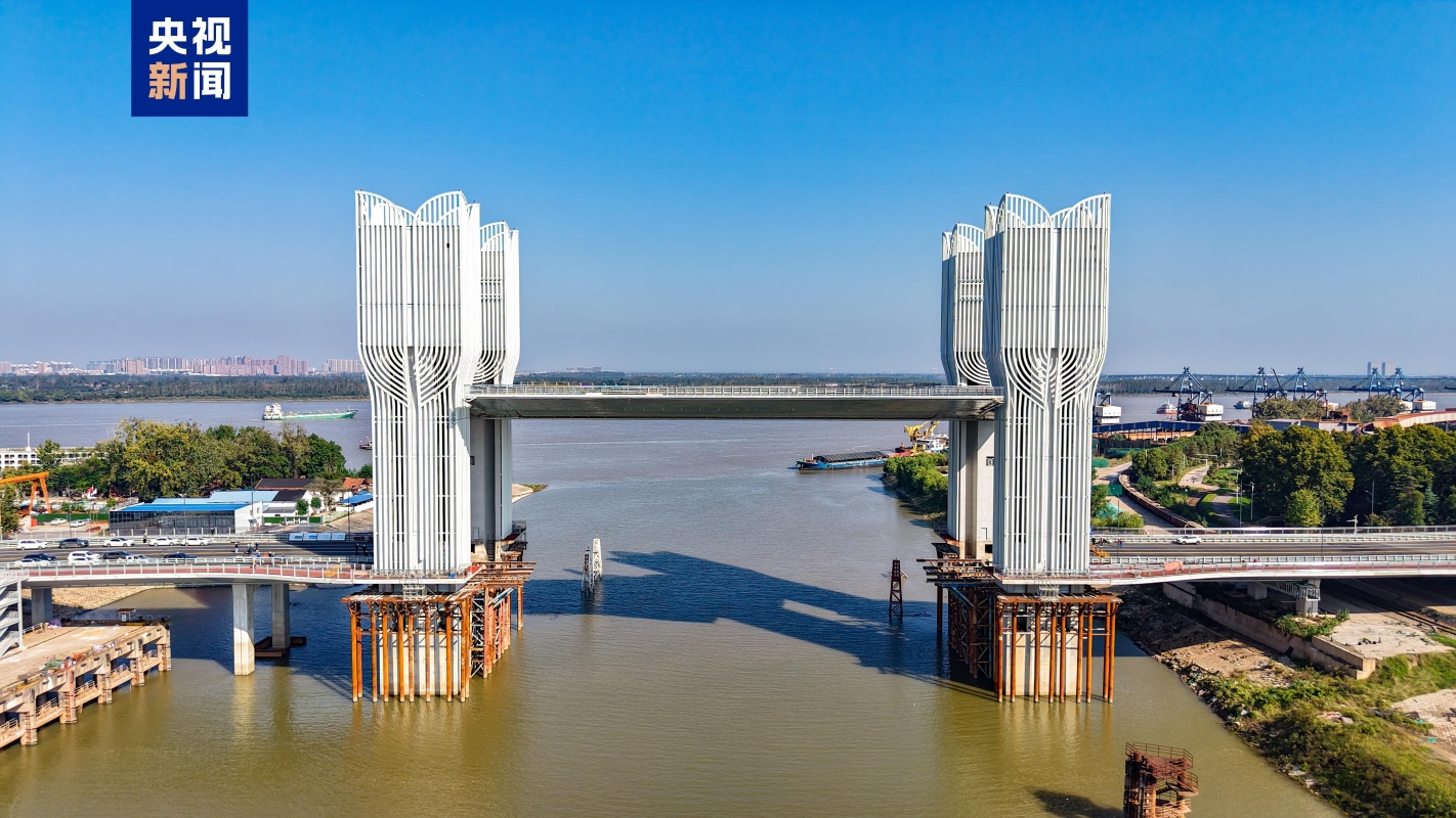 右岸大道開啟橋 圖源:央視新聞 右岸大道開啟橋位於青山工業港,橋樑可升降部分全長104米,塔柱最寬處達46.2米,最大提升高度27米,提升總重達2650噸。其四項指標:提升長度、寬度、高度與重量,均位居亞洲同類型開啟橋之首。該橋採用升降式結構,橋面可在9分鐘內平穩升至27米高,使通航淨空從8米增至35米,確保5000噸級船舶順利通行,兼顧日常交通與汛期航運需求。 作為武漢市“十四五”(2021-2025年)重點工程,右岸大道北段西起建設十一路,東至焦沙二路,全長7.2公里,道路紅線寬40至50米,既是長江主軸右岸大道的北延線,也是長江北湖生態綠色發展示範區的交通主動脈和濱江景觀軸。項目全線通車後,將武漢中心城區至化工新區的車程由1小時縮短至15分鐘,並強化武漢與鄂州等周邊城市的互聯互通。