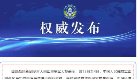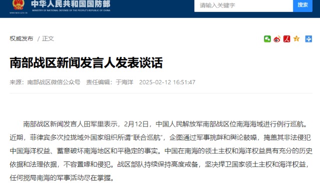 香港中通社11月1日電 中國人民解放軍南部戰區新聞發言人田軍里空軍大校11月1日表示,10月30日至31日,菲律賓拉攏域外國家攪局南海,組織所謂“聯合巡航”,嚴重破壞地區和平穩定。