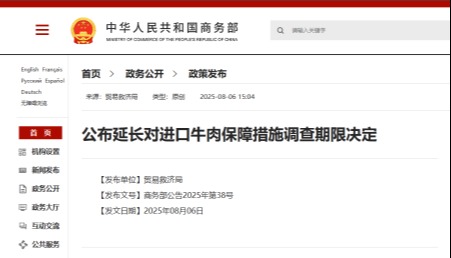 中國再次延長對進口牛肉保障措施調查期限分享到: