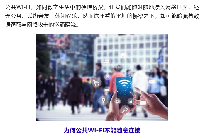 圖片來源:中國國家安全部微信公眾號 為何公共Wi-Fi不能隨意連接 惡意Wi-Fi竊密。個別境外間諜情報機關會在特定區域(如政府機關周邊、涉密單位附近)設置惡意Wi-Fi,一旦公職人員、特別是涉密人員不慎連接,其設備內的敏感信息、通訊錄、郵件往來等可能會被全程監控,甚至造成國家秘密洩露。 網絡攻擊跳板。不安全的公共Wi-Fi是黑客攻擊的重要渠道。用戶設備在連接此類Wi-Fi後,可能被暗中植入惡意程序,在不知情情況下被遠程操控,給個人財產和社會公共安全帶來威脅。 認知操縱畫像。連接不安全公共Wi-Fi時產生的瀏覽記錄、位置信息、輸入內容等個人數據,容易被別有用心者非法收集分析,用於構建用戶畫像、識別群體傾向,攻擊者可藉此精準投放虛假信息、煽動對立情緒,長期侵蝕社會共識與主流價值觀,對社會穩定和意識形態安全構成潛在威脅。 如何有效防範?請牢記以下核心原則 關閉自動連接功能。關閉設備的“自動連接Wi-Fi”功能,防止手機在用戶不知情情況下連入惡意網絡。在連接公共Wi-Fi前,請主動向場所工作人員核實、確認,確保連接到的是真實可靠的Wi-Fi。 避免進行敏感操作。在公共Wi-Fi環境下,不要登錄隱私敏感賬號,請勿進行網上轉賬、輸入銀行卡密碼等高風險操作。盡量避免使用公共Wi-Fi處理涉及個人隱私等敏感事務。 安裝更新防護軟件。安裝并及時更新防護軟件,可以有效防止惡意軟件攻擊,保護設備安全。此外,使用虛擬私人網絡等加密手段,讓網絡流量通過加密通道傳輸,也能有效防止用戶數據被攻擊者竊取。 國家安全機關提示 廣大公民應自覺提升網絡安全意識,不隨意連接未知熱點、不進行敏感操作、不點擊可疑鏈接,築牢個人防護屏障,淨化網絡空間環境,共同守護國家安全。如發現任何利用網絡實施的間諜行為或可疑線索,請立即通過12339國家安全機關舉報受理電話、網絡舉報平台(www.12339.gov.cn)、國家安全部微信公眾號舉報受理渠道或直接向當地國家安全機關進行舉報。 (完) 【編輯:紀東】