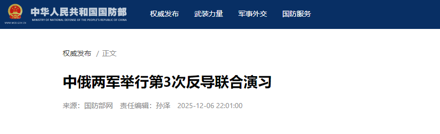 香港中通社12月7日電 據中國國防部6日晚間消息,12月上旬,中俄兩軍在俄羅斯境內舉行第3次反導聯合演習。