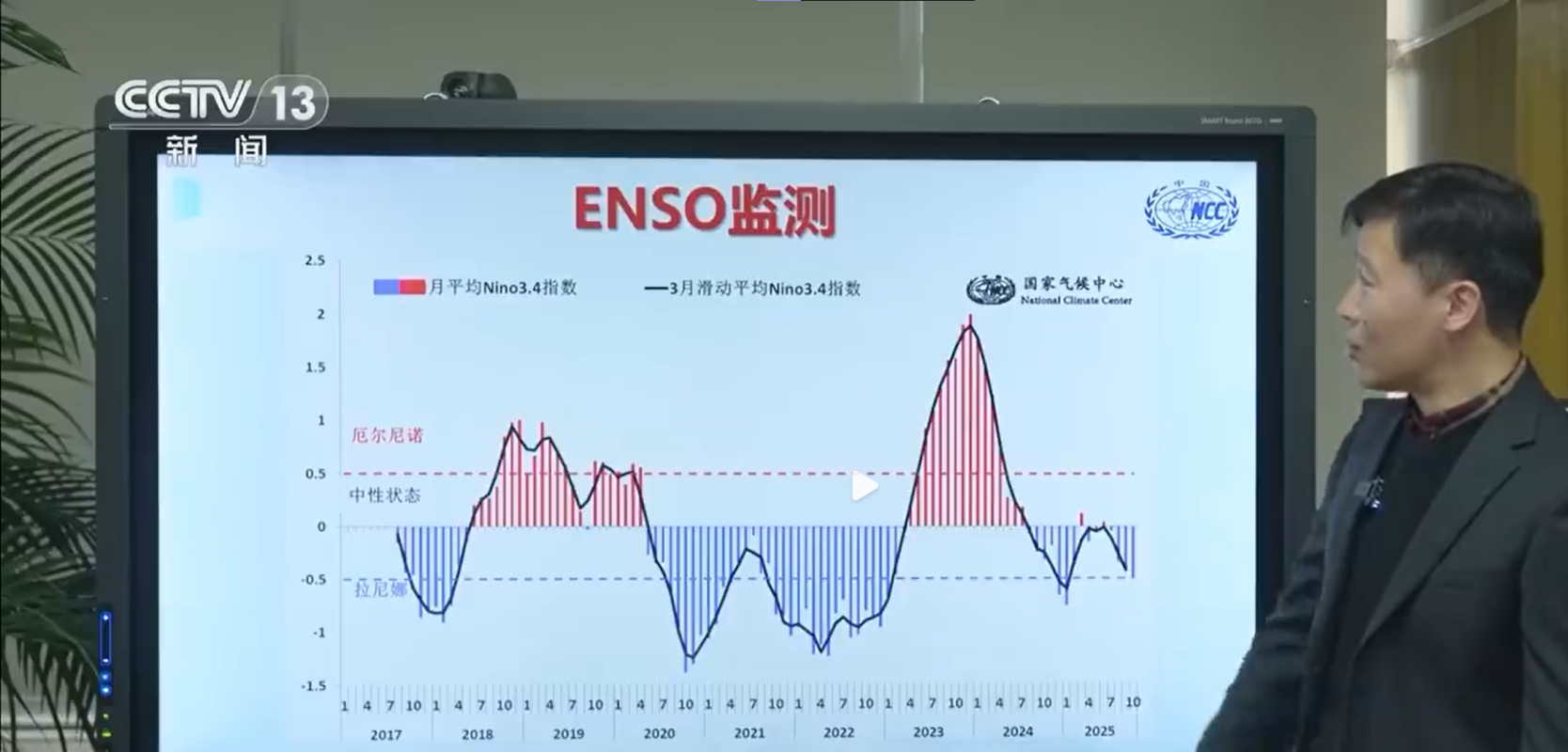NINO指數。圖源:央視新聞截圖 據介紹,一般來說,發生拉尼娜事件的冬季,西北太平洋和南海上空盛行氣旋式異常環流,其西側偏北風有利於引導北方冷空氣南下,加強東亞冬季風,導致中國中東部地區氣溫偏低為主。但需要指出的是,受全球變暖等因素的影響,本世紀以來,拉尼娜背景下中國冬季氣溫偏暖的情況也頻繁發生,甚至出現暖冬。 中國國家氣候中心預計,今年冬季中國大部地區氣溫接近常年同期到偏高,但氣溫冷暖起伏顯著,強降溫和升溫事件頻繁。降水方面,全國降水總體偏少,空間上將呈“北多南少”分布。 拉尼娜是西班牙語“La Nina”的音譯,是“聖女”、“小女孩”的意思。氣象學家用以指赤道太平洋東部和中部海表溫度大範圍持續異常變冷的現象,是熱帶海洋和大氣相互作用的產物,它的出現會使全球氣候出現異常。 此前,中國國家氣候中心監測顯示,今年10月,中國已進入拉尼娜狀態。但拉尼娜狀態不等於拉尼娜事件。NINO(尼諾)3.4指數表徵赤道中東太平洋的海溫。一般來講,當該指數跌破零下0.5℃的時候,赤道中東太平洋進入拉尼娜狀態。尼諾3.4指數連續5個月在零下0.5℃以下,才會被認為是發生了一次拉尼娜事件。(完) 【編輯:彭玉婷】