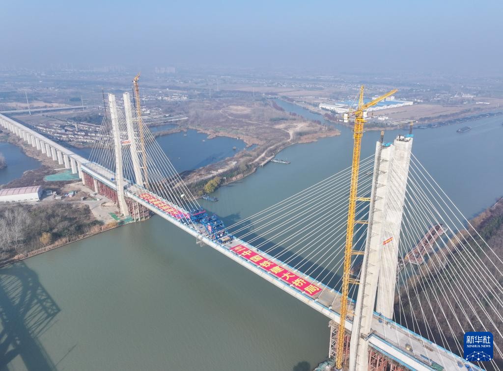 12月19日拍攝的通泰揚特大橋跨京杭運河斜拉橋合龍施工現場(無人機照片)。新華社圖片 通泰揚特大橋全長約172.9公里,是目前世界上在建長度最長的高鐵橋樑。它縱貫江蘇長江北岸,連接南通、泰州、揚州三市,先後跨越既有鐵路、公路、水運航道116次,施工難度極大。此次合龍的跨京杭運河斜拉橋是全線跨度最大、主塔最高、技術最複雜的控制性節點之一。 滬渝蓉高鐵線路全長約2100公里,設計時速350公里,串聯上海、江蘇、安徽、湖北、重慶、四川六省市。全線建成通車後,將與長江水運形成互補,優化沿江地區綜合交通體系。(完) 【編輯:林曉惠】
