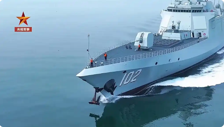 (圖:央視新聞) 拉薩艦是中國海軍055型護衛艦,編號102。作為中國自行研發的新型萬噸級護衛艦,具有強大的防空、反艦、攻擊及電子戰等作戰功能。