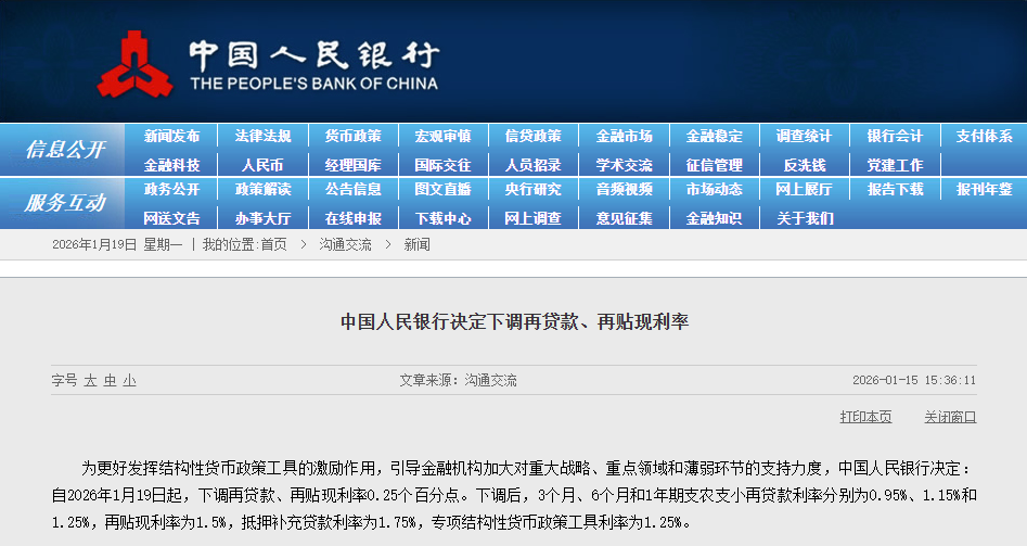 圖片來源:中國人民銀行官網截圖 據悉,此次調整覆蓋全期限檔次的結構性貨幣政策工具。下調後,3個月、6個月和1年期支農支小再貸款利率分別降至0.95%、1.15%和1.25%;再貼現利率為1.5%,抵押補充貸款利率為1.75%,專項結構性工具利率統一為1.25%。與全面降息不同,本次操作聚焦“精準滴灌”,旨在降低商業銀行從央行融資的成本,激勵其加大對小微企業、科技創新、“三農”、綠色轉型等重點領域和薄弱環節的信貸投放。 作為一攬子政策的核心,此次降息同步配套八項支持措施。包括新增5000億元(人民幣,下同)支農支小再貸款額度,單設1萬億元民營企業再貸款;將科技創新和技術改造再貸款額度提升至1.2萬億元,覆蓋更多研發投入較高的民營中小企業;拓展碳減排支持工具至節能改造、綠色升級等領域;將健康產業納入服務消費與養老再貸款支持範圍。 此外,央行還協同金融監管總局,將商業用房貸款最低首付比例下調至30%,助力房地產去庫存。 央行副行長鄒瀾強調,此舉是貫徹落實中央經濟工作會議精神、實施適度寬鬆貨幣政策的關鍵一步,既傳遞穩增長信號,也為“十五五”開局之年注入金融動能。業內專家指出,結構性降息有助於穩定銀行淨息差、降低實體經濟綜合融資成本,引導社會資本流向政策支持領域。(完) 【編輯:林曉惠】